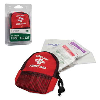 (1) Premium Quality Mini Backpack (1) Sting Relief Pad (3) Antiseptic Towelettes (4) Alcohol Prep Pads (10) Bandages - 3/8 In X 1-1/2 In (12) Bandages - 3/4 In X 3 In (1) Sterile Gauze Pad - 2 In X 2 In (1) Adhesive Tape Roll - 1/2 In