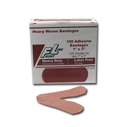 WOVEN 1" X 3" Bandage strips are a heavy woven cloth and latex free with rounded corners. •Heavy woven adhesive •Latex free.