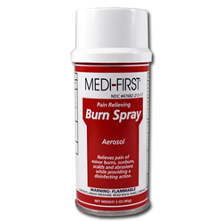 BURN SPRAY 3 OZ AEROSOL Pain relieving burn spray in an aerosol can. Burn spray relieves pain of minor burns, sunburn, scalds, and abrasions. Provides a disinfecting action.