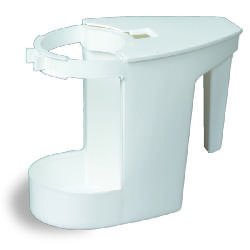 Locking Strap Adjusts And Holds Most Quart Bottles. Plastic Hinged Lid Hides Toilet Brush And Prevents Odors And Spills