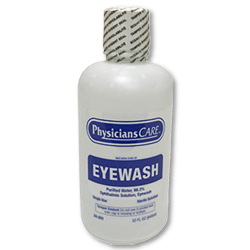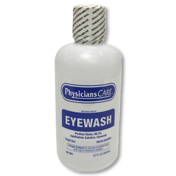 Sterile isotonic solution eye wash in 32 oz bottle.